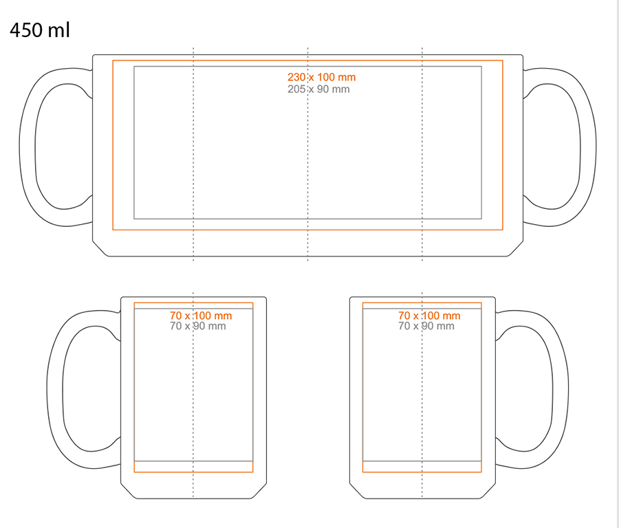 * W przypadku projektów wybiegających poza standardową powierzchnię nadruku prosimy o kontakt z działem handlowym.